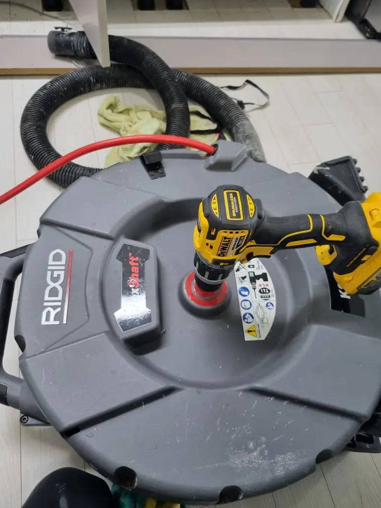 샤프트 케이블을 배관 입구에 삽입하고 천천히 밀어 넣습니다. 케이블이 막힌 부분에 도달하면 저항이 느껴지는데, 이때 샤프트 모터를 작동시켜 케이블을 회전시킵니다. 케이블 끝의 드릴 헤드가 회전하면서 막힌 찌꺼기를 파쇄하거나 걸어당깁니다. 회전 속도와 밀어넣는 힘을 조절하면서 조금씩 전진시키는 것이 중요합니다.